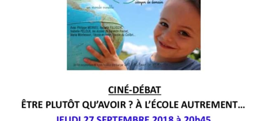 Ciné Débat autour du Film "Etre plutôt qu'avoir ? A l'école Autrement" le 27 septembre au Sirius organisé par l'Assocation Pour la Création d'une Ecole Démocratique au Havre.