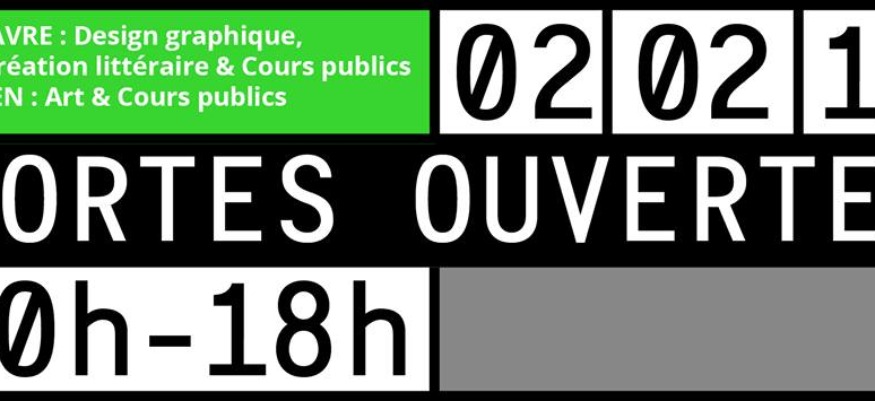 JPO de l'ESADHaR ce samedi 2 Février, par M. Heynen De 10h à 18h, l'Ecole Supérieur d'Art et Design Le Havre-Rouen ouvre ses portes au public.Venez rencontrer les enseignants et les étudiants de l' ESADHaR pour échanger sur votre orientation.Au programme :- visite des campus- expositions- lectures- performancesPlus d'informationshttp://esadhar.fr/fr/actualitees/orientation-portes-ouverteshttps://www.facebook.com/events/272927820047907/ / / / / / / / / / /DÉPARTEMENTS DESIGN GRAPHIQUE & INTERACTIVITÉ + CRÉATION LITTÉRAIRE => Campus du Havre65 rue Demidoff 76600 Le Havre/ / / / / / / / / /DÉPARTEMENT ART => Campus de Rouen2 rue Giuseppe Verdi 76000 Rouen/ / / / / / / / / /Visites guidées ou libres/ / / / / / / / / /Animation by Camille Trimardeau
