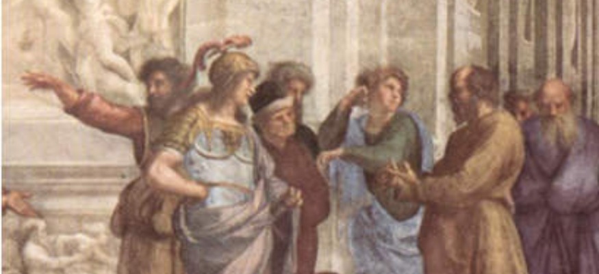 Illustration : détail de la fresque de Raphaël : L'école d'Athènes" présentant Socrate en pleine discussion