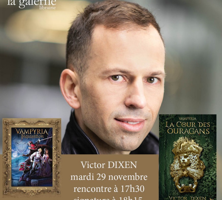 A l'issue de la rencontre (n'oubliez pas de réserver votre place assise !), Victor Dixen signera ses livres (à partir de 18h15) ainsi que le premier volume BD "Vampyria Inquisition T01 L'inquisiteur et son ombre".