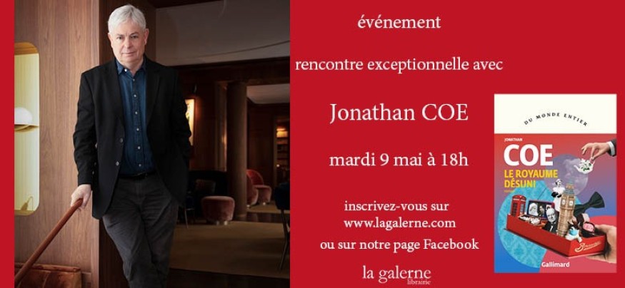 C'est un évènement !L'auteur britannique Jonathan Coe sera à La Galerne mardi 9 mai.Il a étudié à la King Edward's School à Birmingham où il est né, et au Trinity College à Cambridge avant d'enseigner à l'Université de Warwick. Jonathan Coe doit sa notoriété dans le monde à son roman "Testament à l'anglaise", virulente satire de la société britannique des années du thatchérisme. Il a reçu le Prix Médicis étranger en 1998 pour "La Maison du sommeil", et a écrit "Le cœur de l’Angleterre", "La pluie, avant qu’elle tombe", "Bienvenue au Club", "La vie très privée de Mr Sim"…Il poursuit sa description de l'histoire contemporaine britannique dans "Le Royaume désuni" qu'il vient présenter et signer à La Galerne, dans lequel il retrace l'histoire d'une famille depuis les années 1940 jusqu'à aujourd'hui, s'inspirant de la figure de sa mère récemment décédée.Avec beaucoup d’humour (anglais, bien entendu ! ) Jonathan Coe propose une satire sociale et politique, mais également un roman intime et personnel.
