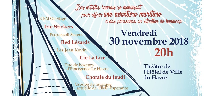 Le Rotary Club Le Havre Océane et ses partenaires sont heureux de vous convier au concert-spectacle "Des voiles pour un rêve". L'objectif de cette soirée est de lever des fonds afin d'offrir des baptêmes marins à des enfants et adultes handicapés. Ces baptêmes seront réalisés par l'intermédiaire de l'association Normhandimer qui possède un bateau permettant notamment à des enfants en fauteuil de naviguer.