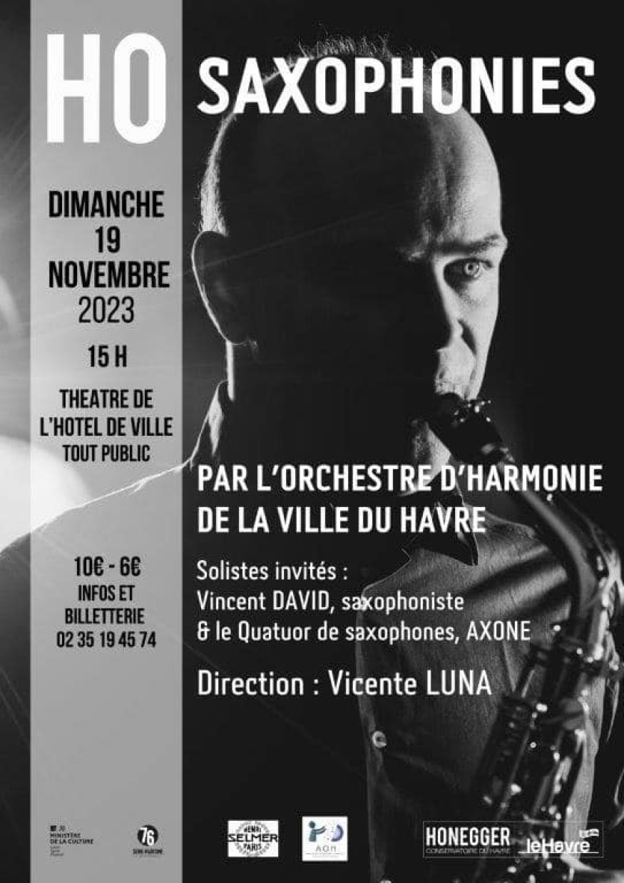 L'Orchestre d'Harmonie de la Ville du Havre se produira au Théâtre de l'Hotel de Ville le 19 novembre prochain pour un concert autour du saxophone.