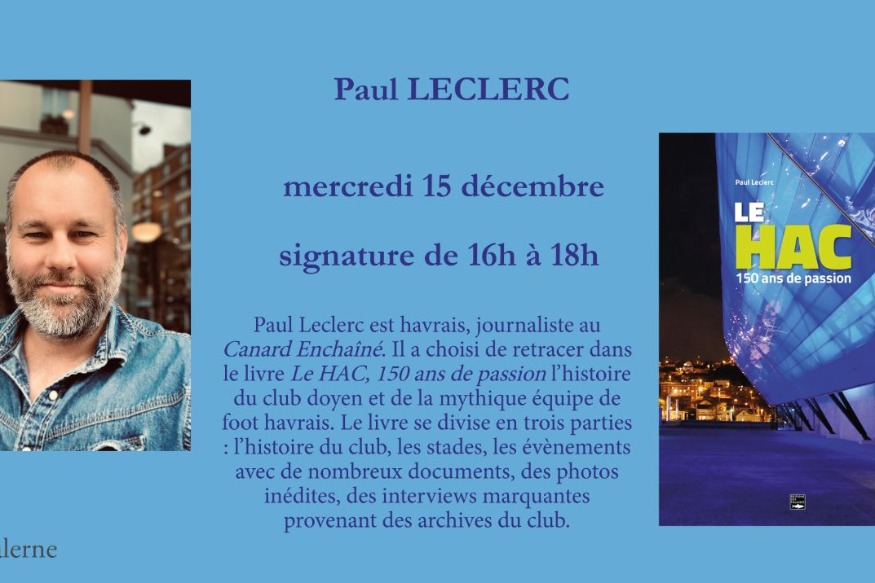 Paul Leclerc est havrais, journaliste au Canard Enchaîné. Il a choisi de retracer dans le livre "Le HAC, 150 ans de passion" paru aux éditions des Falaises, l’histoire de la mythique équipe de foot havrais, le club doyen qui a formé des grands joueurs et fait la fierté de la ville.Le livre se divise en trois parties : l’histoire du club, les stades, les évènements avec de nombreux documents, des photos inédites, des interviews marquantes provenant des archives du club.