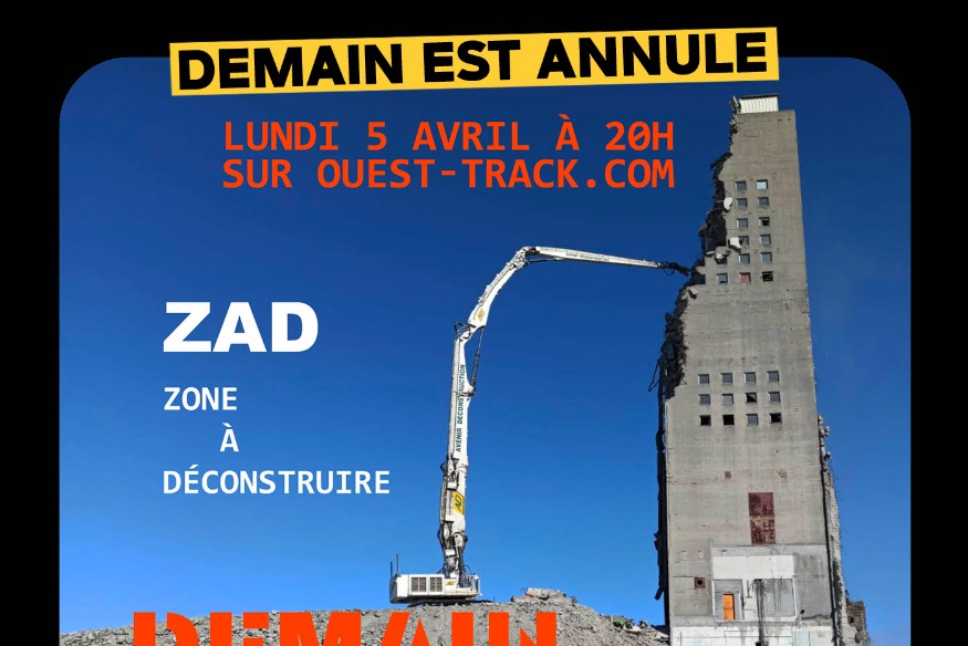 Demain est annulé, épisode 10, ZAD, Zone(s) à déconstruire Avec Augustine Salazar - Suzanne Aquilons - Leïla Kobus - Jack Roublard - Johnny Rossard (aka Sarah Masson - Rachel Doumerc - Flora Donars - Olivier Robert - Gérard Masson) Stop. On arrête. On met sur pause. On rembobine. On annule tout. Je répète, on ANNULE tout. On ouvre. Plus d’horizon, plus de perspective. Plus de passé, pas de présent. Nous étions affolés, exaspérés, désespérés. “Qu’est-ce que ça veut dire dégueulasse?” Certains irréductibles......