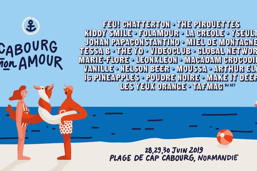 Présentation de Cabourg Mon Amour par Romain RenouFestival Cabourg, Mon Amour 2019Rendez-vous les 28, 29 & 30 juin prochains sur la plage de Cap Cabourg en Normandie pour la 7ème édition du festival Cabourg, Mon Amour !3 jours de musique, de soleil et de fruits de mer les pieds dans le sable !PROGRAMMATIONFeu! Chatterton~The Pirouettes ~ Kiddy Smile ~ Folamour ~ La Creole ~ Yseult ~ Johan Papaconstantino ~ Miel De Montagne ~ Tessa B. ~ The YD ~ Videoclub ~ GLOBAL NETWORK~ Marie-Flore~ LeonxLeon~ Macadam Crocodile~ Vanille~ Nelson Beer ~ Moussa ~ Arthur ELY~ 16 Pineapples~ Make It Deep~ Les Yeux Orange~ The Arts Factory Magazine dj setBILLETTERIEPass 3 jours :......