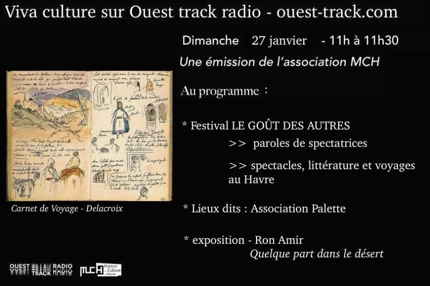 Paroles de spectatrices Festival du Goût des Autres : DELPHINE , LOLI , CAMILLE Rubrique des Spectateurs : Spectacles, litérature et voyages au Havre Les Lieux Dits : Association Palette 10' Chronique : Exposition RON AMIR- quelque part dans le désert