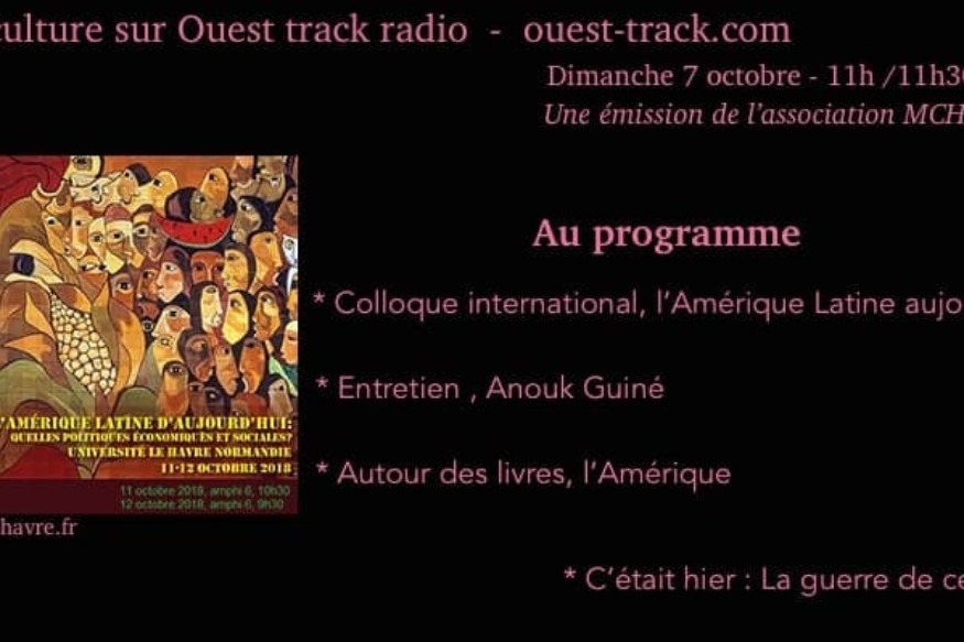 ACTUALITÉS : COLLOQUE INTERNATIONAL , L’AMÉRIQUE LATINE AUJOURD’HUI, INTERVIEW SUR LA RENTRÉE LITTÉRAIRE EN COMPAGNIE DES LIBRAIRIES AU FIL DES PAGES ET BDLYRIUM C’ÉTAIT HIER: LA GUERRE DE 100ANS,NAISSANCE DE JACQUES CAZOTTE LE 7/10/1719,ANNIVERSAIRE DE BERNARD LAVILLIERS AUTOUR DES LIVRES : L’AMÉRIQUE ENTRETIEN: ANOUK GUINÉ, MAÎTRE DE CONFÉRENCE À L’UNIVERSITÉ DU HAVRE DANS LE CADRE DE LA SEMAINE DE L’AMÉRIQUE LATINE