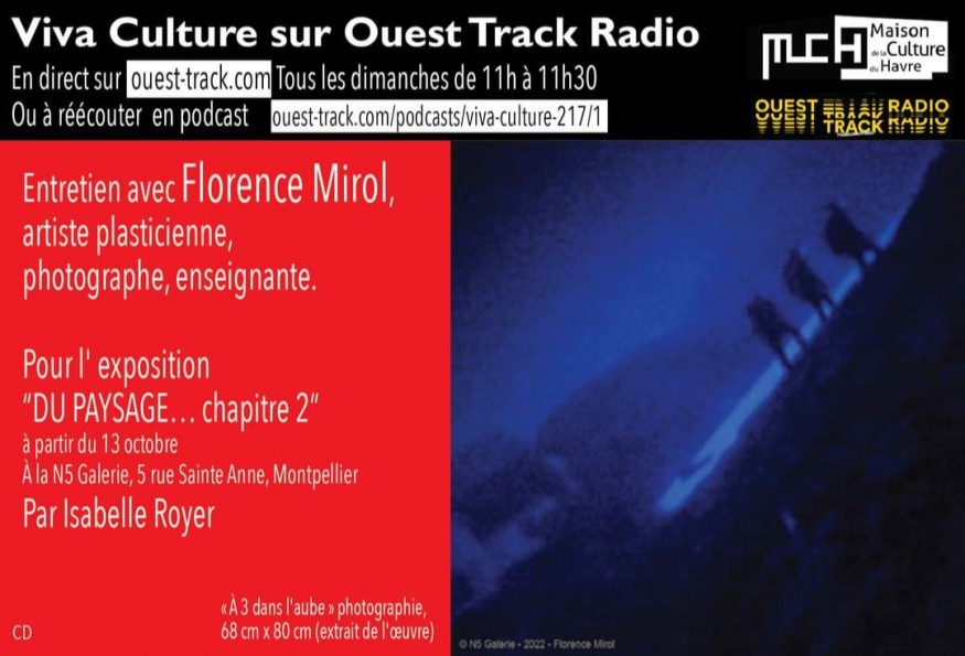 ENTRETIEN : Florence Mirol, artiste plasticienne, photographe, enseignante. Exposition à Montpellier Autour du paysage, à partir du 13 octobre 22, n°5 Galerie, rue Sainte Anne.