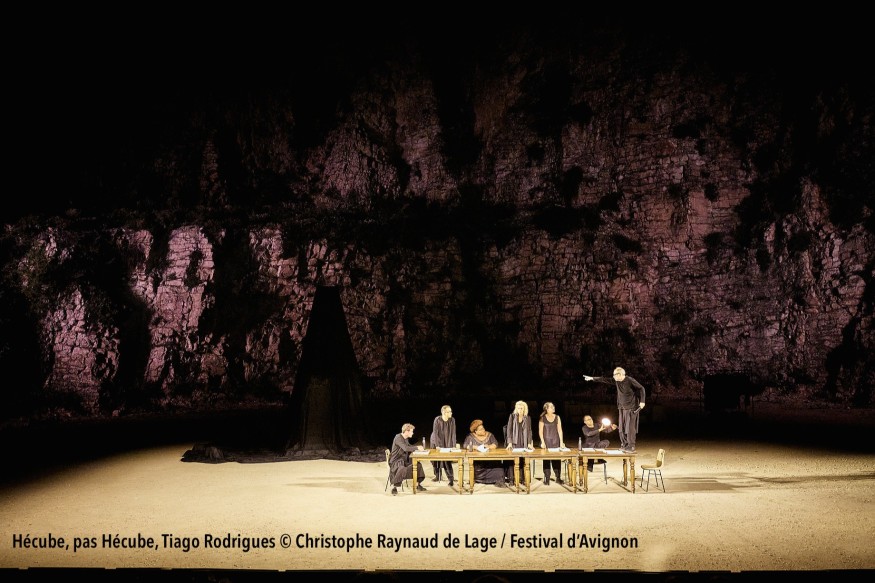 Hécube, pas Hécube est une tragédie née entre les lignes d’une tragédie, écrite à même la peau des interprètes de la Comédie-Française. Tiago Rodrigues met en scène la vie de Nadia, qui s’organise entre les planches du théâtre et le parquet du tribunal. Nadia répète Hécube (la pièce d’Euripide) tout en se battant pour que justice soit rendue à son fils, autiste, maltraité par l’institution qui l’a pris en charge. Alors qu’approchent la première du spectacle et le verdict du procès, le monde bascule autour d’elle. Nadia n’est pas Hécube mais sa vie est percutée de plein fouet par la légende de l’ancienne reine de Troie, devenue esclave révoltée contre son sort qui, face à Agamemnon, dut parler au nom de son fils.